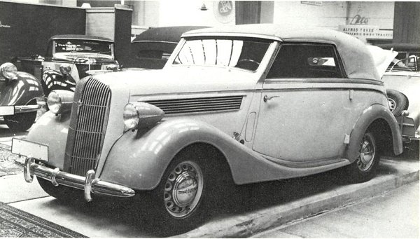 Gläser war mit einem prächtigen 2/4-sitzigen Cabriolet vertreten. Entsprechend hochgestimmt äüßerte sich die zeitgenössische Fachpresse: „Der deutsche Karosseriebauer hat sich einen internationalen Ruf geschaffen. Unser Bild zeigt ein wunderbares Kabriolett von Gläser auf Opel Admiral. Das Verdeck verschwindet vollkommen und hat vollautomatische Betätigung.“ (Damit machen noch heute manche Reklame, als hätten sie's soeben erfunden...)