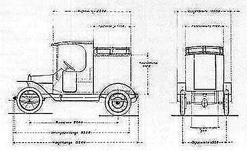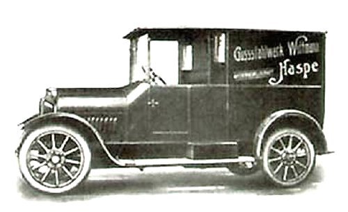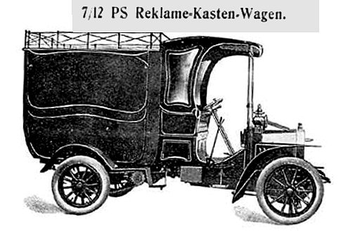 Das robuste Fahrzeug wurde auch als größere Alternative zum 4 PS-Lieferwagen angeboten. Die beiden ersten Abbildungen zeigen die 10/45 PS-Ausführung von 1925. In der Werbung waren damals kolorierte Zeichnungen noch weit verbreitet. Leider liegen keine Fotos vor, die ihn als Lieferwagen zeigen. Dennoch ist dieser als „Mehrzweck-Wagen“ ausgelegte Vertreter höchst interessant. Unter der Woche diente er zum Transport von Nützlichem und Notwendigen; für den Ausflug am Sonntag konnte er mittels einfach einzusetzender Bestuhlung als Tourenwagen genutzt werden. Sogar ein einfaches Spriegelgestell mit Verdeck gab es dazu, dass zumindest leidlichen Wetterschutz gewährte.