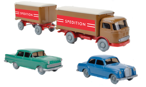 Die meisten WIKING-Freunde werden sich noch an das Jahr 1977 erinnern, als der Opel Kapitän `51 so etwas wie Signalwirkung ins Programm brachte. Als „Veteran“-Neuheit hatten die Traditionsmodellbauer die Opel Limousine vorgestellt und damit zwei Jahre nach Beginn der ausgerufenen Klassiker-Offensive einen Epoche prägenden Pkw geschaffen. WIKING-Gründer Friedrich Peltzer hatte bewusst die 1951er-Form des Opel Kapitän gewählt. Er wirkte erhabener, der Chrom-Zierrat war aufgestockt worden. Besonders auffällig: Die Heckräder erschienen jetzt teilverdeckt und das 58 PS starke Rüsselsheimer Vorzeigemodell besaß endlich auch eine ungeteilte Heckscheibe. Von März 1951 bis Juli 1953 wurden insgesamt 48.587 Fahrzeuge gebaut. Mit dem Herbst 1953 waren die ausladenden Kotflügel dann schon Kapitän-Geschichte, denn sein Nachfolgermodell verfügte in der 1954er-Baureihe über eine Pontonkarosserie, die überdies mit dem markanten „Haifischmaul“-Kühlergrill amerikanische Designtrends aufgriff. WIKING lässt dem Klassiker der ersten Stunde ein verdientes Finishing zukommen, das der Aubergine-Lackierung zu entsprechender Geltung verhilft.