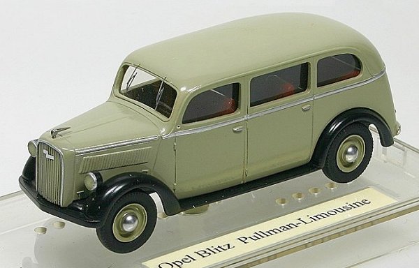Ein Kleinbus auf Blitz 1,5t sieht (im Modell) etwa so aus: Erhältlich war auch ein Krankenwagen (Miesen) in wehrmachtsgrau und im elfenbeinfarbenen Lack der Nachkriegszeit. Zu den Modellen: Als Hersteller vermute ich in allen Fällen die ukrainische Firma Vector Models. Die Pullman-Limousine tauchte auch mal im Angebot von ADP auf. Wurde aber meines Wissens nie offiziell an den Fachhandel ausgeliefert. Mein Modell hat zwar eine ADP-typische Verpackung, trägt aber nirgends den Firmennamen. Vorserie?