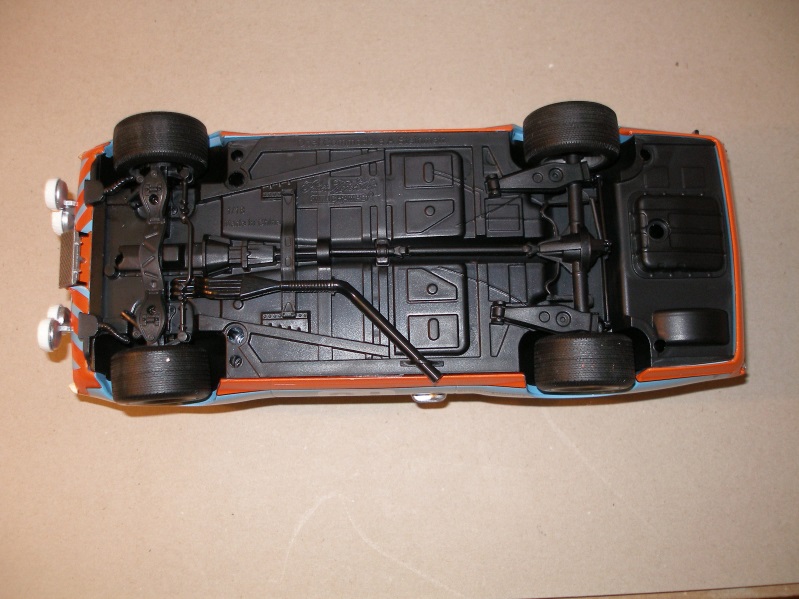 Ansonsten ist das Armaturenbrett recht detailiert, die Speichen der Felgen sind durchbrochen, der Kühlergrill auch, an der Rückseite des Ölkühlers sind zwei Nasen, da könnte man noch Schläuche nachrüsten.
