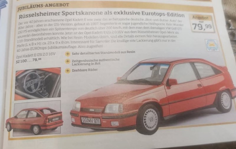 Achtung! Von OTTOmobile gibt es ein Sondermodell des Kadett E GSi 16v in rot für.......eurotops.de