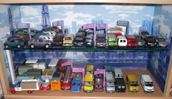 (je ein Fahrzeug pro Baureihe und Karosserievariante, bzw. Sportvariante wie GT/E, GSI, OPC, sowie Prototypen, Rekordfahrzeuge, Motorsportfahrzeuge usw.) Schwerpunkt ist der Maßstab1:43.