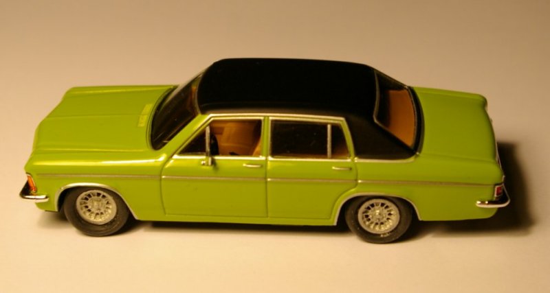 Ich habe auch gerade meinen Admiral B geholt. Schulnote 1? Nicht ganz. Das Modell ist für ein Modell dieser Serie wirklich gut, eigentlich sind nur die Kopfstützen misslungen. Worüber man gern hinwegsehen kann. ABER: welcher Clown ist auf die Idee gekommen, das Auto Kermit-farben zu lackieren?? Der Farbton war in den 70ern zwar bei Mercedes und VW nicht unüblich, aber beim Admiral?? Nö. Oder soll das Lindgrün sein? Wie auch immer: blöde Farbwahl...