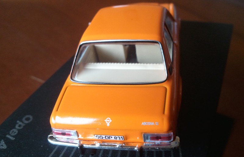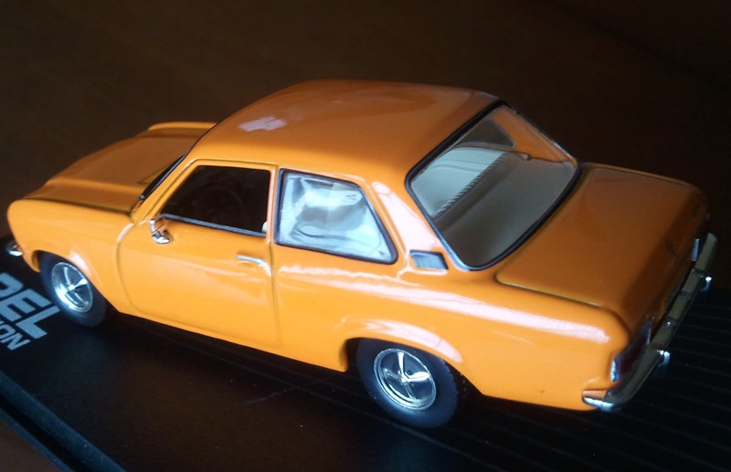 Der Maßstab ist gehalten worden. Die Farbe orange ist auch OK, bringt Farbe in die Vitrine. Da es sich hierbei "nur" um das normale Modell handelt, also ohne Extras wurde somit auch auf Chrom um Radläufe und Fenstereinfassungen verzichtet. Der Innenraum ist auch gut, lediglich Kopfstützen fehlen, die gab es aber beim Standardmodell auch nur gegen Aufpreis. Die Türgriffe könnten schöner sein. Wenn man das Modell direkt von vorn betrachtet, fällt mir sofort die klobige Verarbeitung der Vorderachse auf, sieht aus wie ein Kasten unter dem Fahrzeug und wirkt unschön. Ansonsten eine recht gute Verarbeitung von einigen Details mal abgesehen, Anbei wieder einige Fotos.