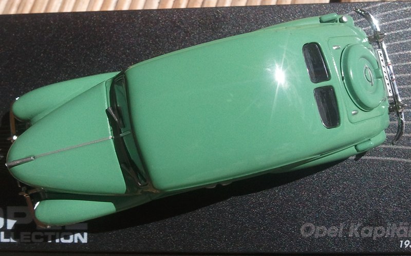 Claus hat im Prinzip schon alles richtig zusammengefasst, ich meine der Mann hat Ahnung. Das was mich am meisten aber stört sind wirklich die überdimensionierten Spaltmaße (vordere Kotflügel zur Motorhaube - hintere Kotflügel zu C-Säulenbereich - Trittbretter zu den 4 gegenläufigen Türen). Über die Farbe kann ich gar nicht schimpfen, schließlich gab es dieses Grün ja wirklich 1939, wäre ja langweilig wenn alle Modelle vor 1945 in schwarz jetzt rauskämen weil die meissten Fahrzeuge in dieser Zeit in schwarz ausgeliefert wurden! Den Scheibenwischer auf der Fahrerseite bekommt man aber leicht in die richtige Stellung sodas der Eindruck von gegenläufigen Wischer entsteht - bleibt dann aber trotzdem ein rechter Wischer. :roll: