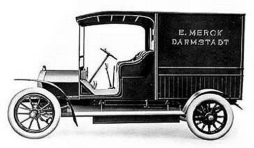 Von 1905-1908 lief der Bau des Typs Opel 14/20 PS. Das gezeigte Fahrzeug ist 1907 für den Darmstädter Chemie- und Arzneihersteller Merck gebaut worden.