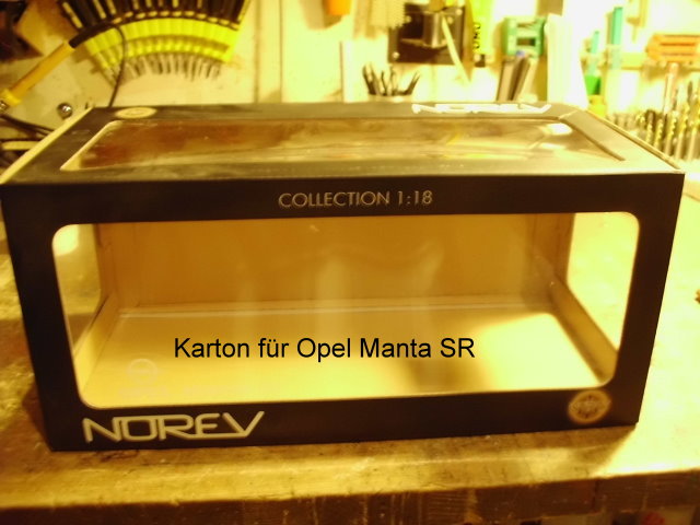 Zum Ersten und Zweiten ist das ein Karton für einen Opel Manta SR mit Rahmen