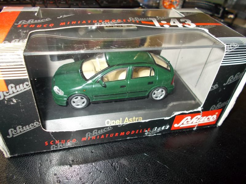 Zu dem grünen Astra G 5t fehlt mir eine originale schwarz/rote Schuco-Verpackung mit dem eckigen "Fensterausschnitt".