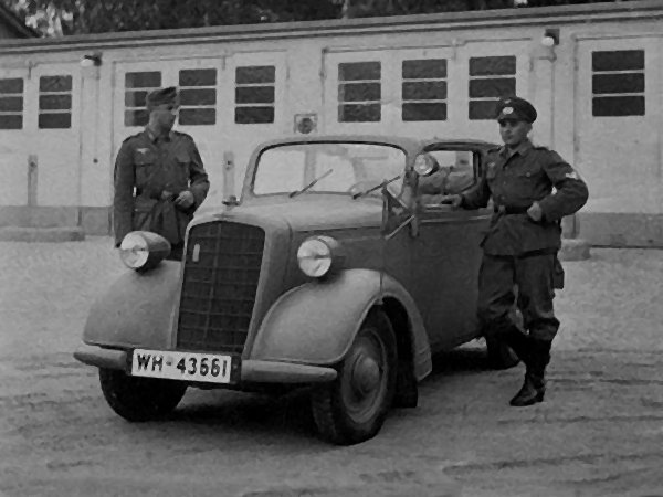 Das letzte Bild zeigt, dass auch der kleine 1,3 Liter dann als „kv“ (kriegsverwendungsfähig) befunden wurde. Offenbar soeben erst requiriert, ist die Cabrio-Limousine bis auf den Anstrich in völlig zivilem Zustand. Der Suchscheinwerfer war damals ein durchaus beliebtes und ziviles Zubehörteil.