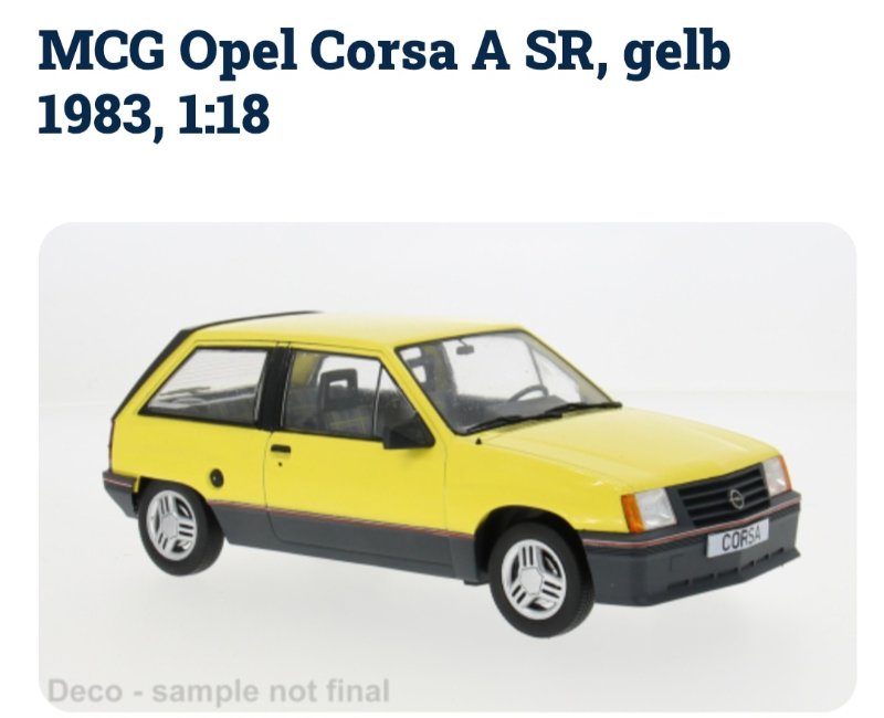 MCG bringt als Neuheit in spè nach dem Corsa A auch den Corsa B als 3 Türer in sämtlichen Versionen wie Swinger, Joy usw.....und auch GSi! TOP! :D