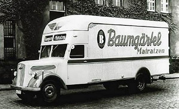 Eine Rarität im doppelten Sinne: 1. ein 3t Blitz mit sog. Pullman-Kofferaufbau (sehr wahrscheinlich von Ackermann) und 2., weil es dieses Foto davon gibt!