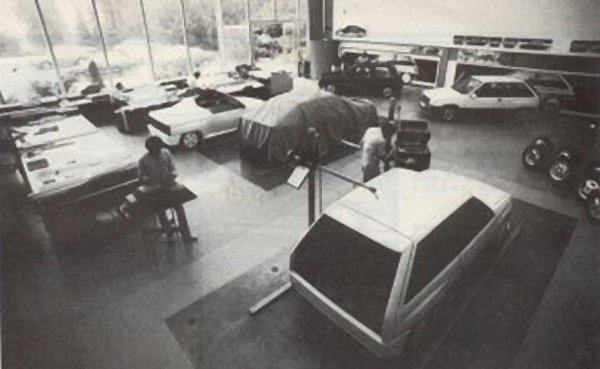Blick in die Design-Abteilung mit dem Spider-Prototyp, der März 1982 in Genf präsentiert wurde. - Nach und nach entstanden so in Rüsselsheim immer mehr fertigungsreife Bauteile, aber erst im Mai 1982 konnten daraus in Saragossa 20 „Pilot“-Corsa gebaut werden. Diese Gelegenheit nutzte man: Am 13. Mai wurde das hochmoderne GM-Montagewerk vom spanischen König Juan Carlos I. feierlich eröffnet und Ferdinand Beickler, frischgebackener Chef der Adam Opel AG, fuhr den ersten Corsa aus der Montagehalle heraus! Die 20 „Pilot“-Corsa dienten zunächst der Erprobung und Abstimmung der Montageabläufe in Saragossa.