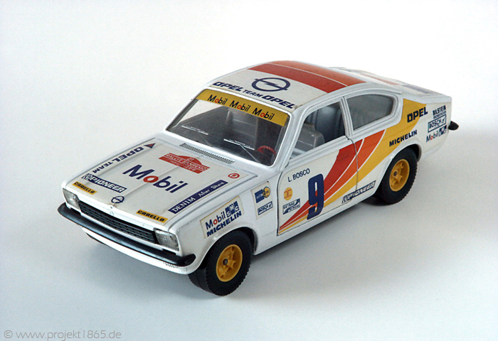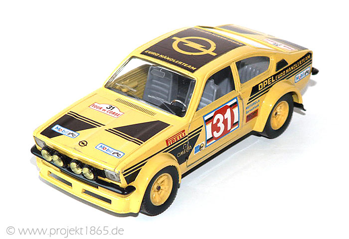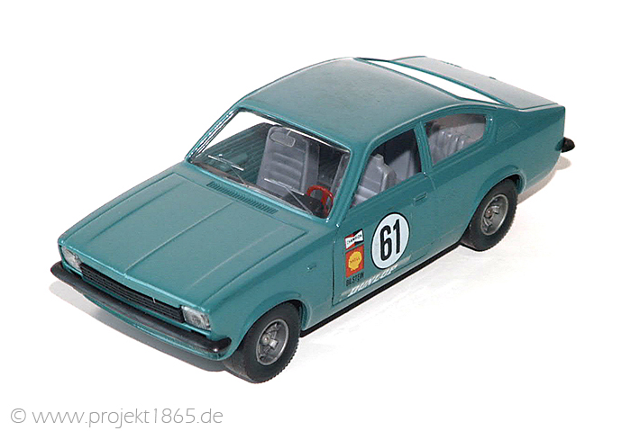 blaumet. mit Decals und gelben Felgen NEU grün mit Decals und gelben Felgen grün mit Decals und grauen Felgen weiss mit Decals und gelbe Felgen weiss mit Decals und graue Felgen weiss Werbemodell mit Aufdruck "Gom" auf Türen und Kofferdeckel NEU Rally mit großen Rädern Rally mit großen gelben Felgen Rally mit kleinen Rädern und ohne Dachdecal Rally mit zusätzlicher Werbung einer französischen Firma (original?)
