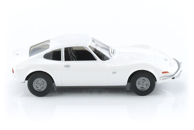 Fahrgestell in schwarz, Karosserie in weiss. Inneneinrichtung in schwarz. Heckscheinwerfer rottransparent eingesetzt. Die Stoßstangen sind silbern vorn und hinten eingesetzt. Felgen in silber. Front- und heckseitig Opel-Logo in silber, hinten zusätzlich gesilberter Tankdeckel. Der seitliche Zierrat mit „GT“-Schriftzug ist silbern aufgedruckt.