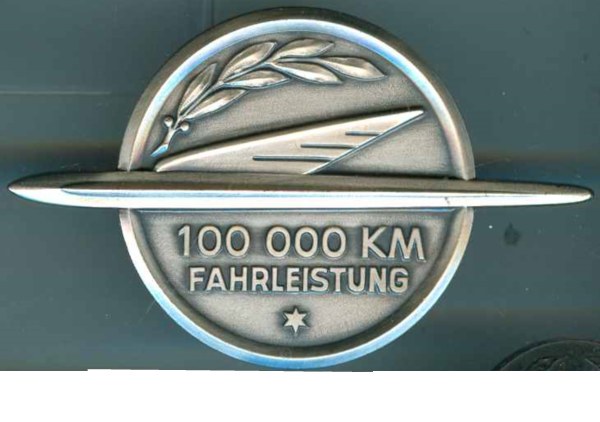 Es handelt sich dabei um ein sehr interessantes Thema wie ich finde, ich hatte vor Jahren die zwei unten gezeigten Plaketten (100000km in Silber* und 200000 im Gold*) mit schwarzem Etui bekommen und hatte mich daraufhin bei den Herausgebern des Opel Jahrbuches schlau gemacht.
